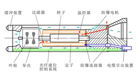 電力傳輸路徑 — 通過(guò)防爆連接器、電纜引出等裝置將電纜引出潛油泵,內(nèi)部整體灌封高強(qiáng)度阻燃環(huán)氧樹(shù)脂