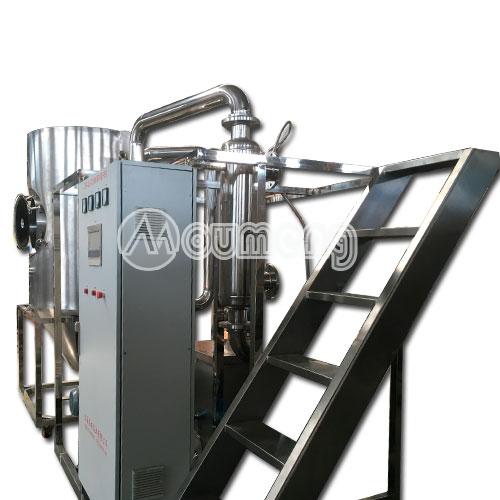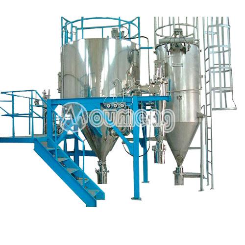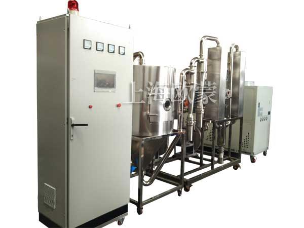 有機溶劑噴霧干燥機是系統(tǒng)組成一個封閉的循環(huán)回路,載熱體可以循環(huán)使用也叫閉式循環(huán)噴霧干燥機。對于揮發(fā)物是有機化學溶劑、有毒或逸出后能對人身、環(huán)境造成危害物料的干燥,料液中含有的有機溶劑或產 品是易氧化、易燃、易爆的物料,一般情況下,需用這種流程的物料都是不能接觸氧氣的,所以載熱體大多使用惰性氣體(如氮氣、二氧化碳等);此種方式又稱惰 性氣體干燥。從干燥器排出的尾氣,經(jīng)過氣固分離后還要經(jīng)過冷凝器回收溶劑或去除濕分,再經(jīng)加熱器升溫后進入干燥器進行循環(huán)使用。通過載熱體和閉式循環(huán)方 式,我們可以有效的避免物質干燥遭遇高溫危險、防止噴霧干燥過程中與氧氣接觸,粉塵90%以上回收等。